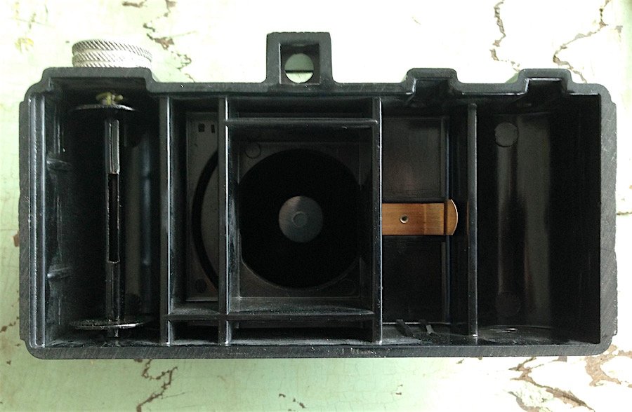 The “Besta” is merely one of dozens of brand names slapped on the lens plates of this 1940s bakelite minicam mold. Known as the “Chicago Cluster,” the cameras patented and mass-produced by Jack Galter at his 711 W. Lake Street factory were famously marketed under numerous brand AND manufacturer names. You can get the complete story on Galter and the tangled Spartus Corp. web on our main Spartus Camera Corp. history page.