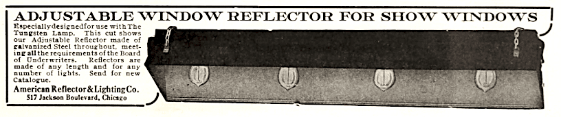Prospects might have looked grim, but the company always seemed to find a new niche when it needed it, and during the 1900s and 1910s, American Reflector became the go-to source for retailers looking to illuminate their showcases and window displays with efficient “tungsten” reflectors.