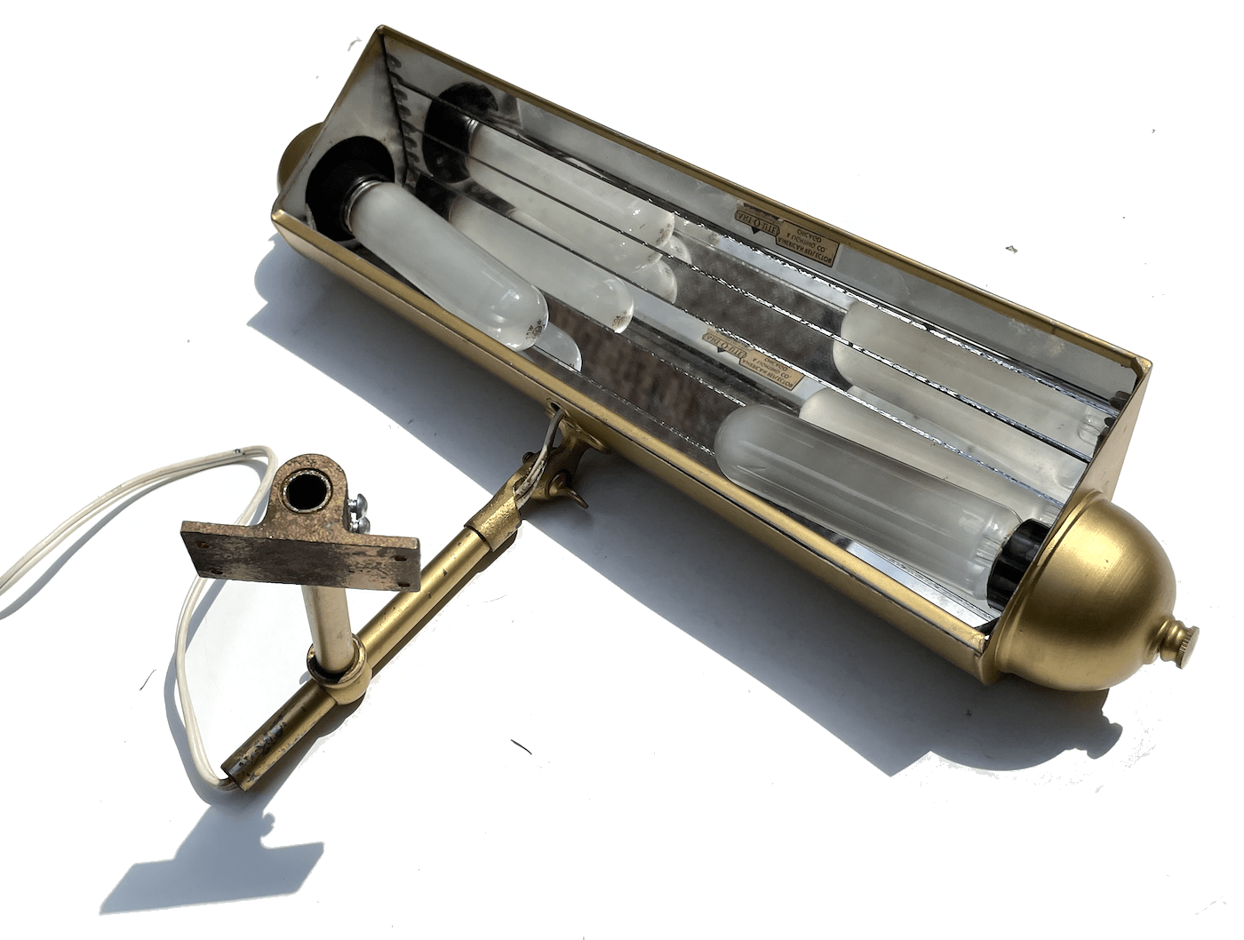For a business that spent roughly a century specializing in illumination, Chicago’s American Reflector & Lighting Company rarely entered the public spotlight itself. This was a small, family-owned enterprise that, for the vast majority of its existence, served a very particular clientele, making angled picture lighting for museums and art galleries. The “Art-O-Lite” reflector—as seen in our own museum collection—was one of the firm’s leading products and a fine example of its reputation for hand-crafted quality. While we think this model might date back to the 1930s, it can actually be difficult to distinguish changes in the design over the decades. As they say, if it ain’t broke . . .