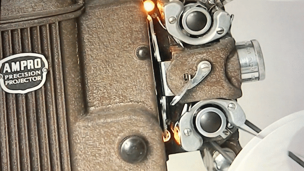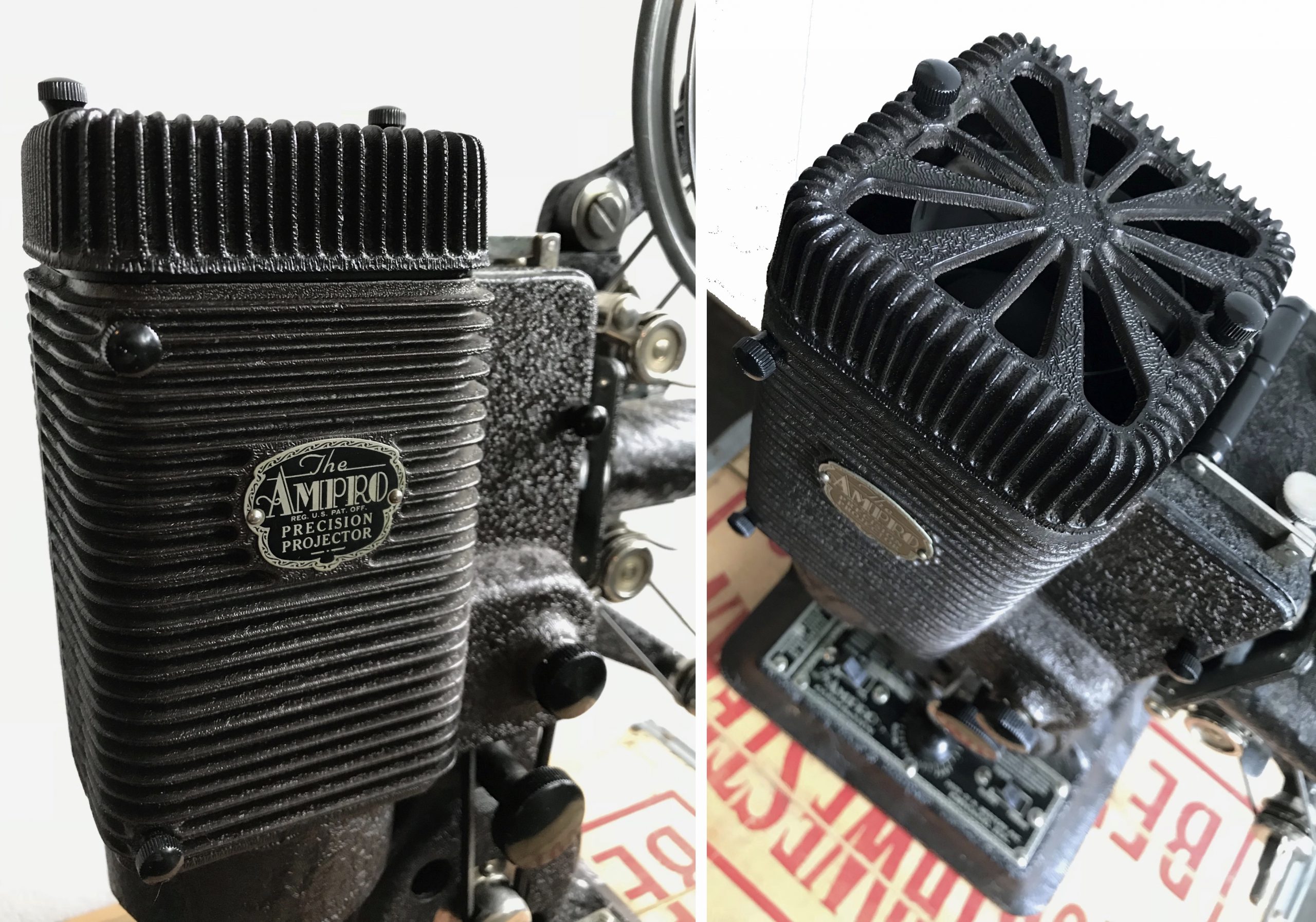 The particular KS model projector in our collection likely dates from around 1936, and while it was a “silent model,” many of Ampro’s 1930s machines were made to be convertible into Amprosound devices, enabling customers to jump into the talkie revolution without having to drop another 200 bucks ($3,000 after inflation).