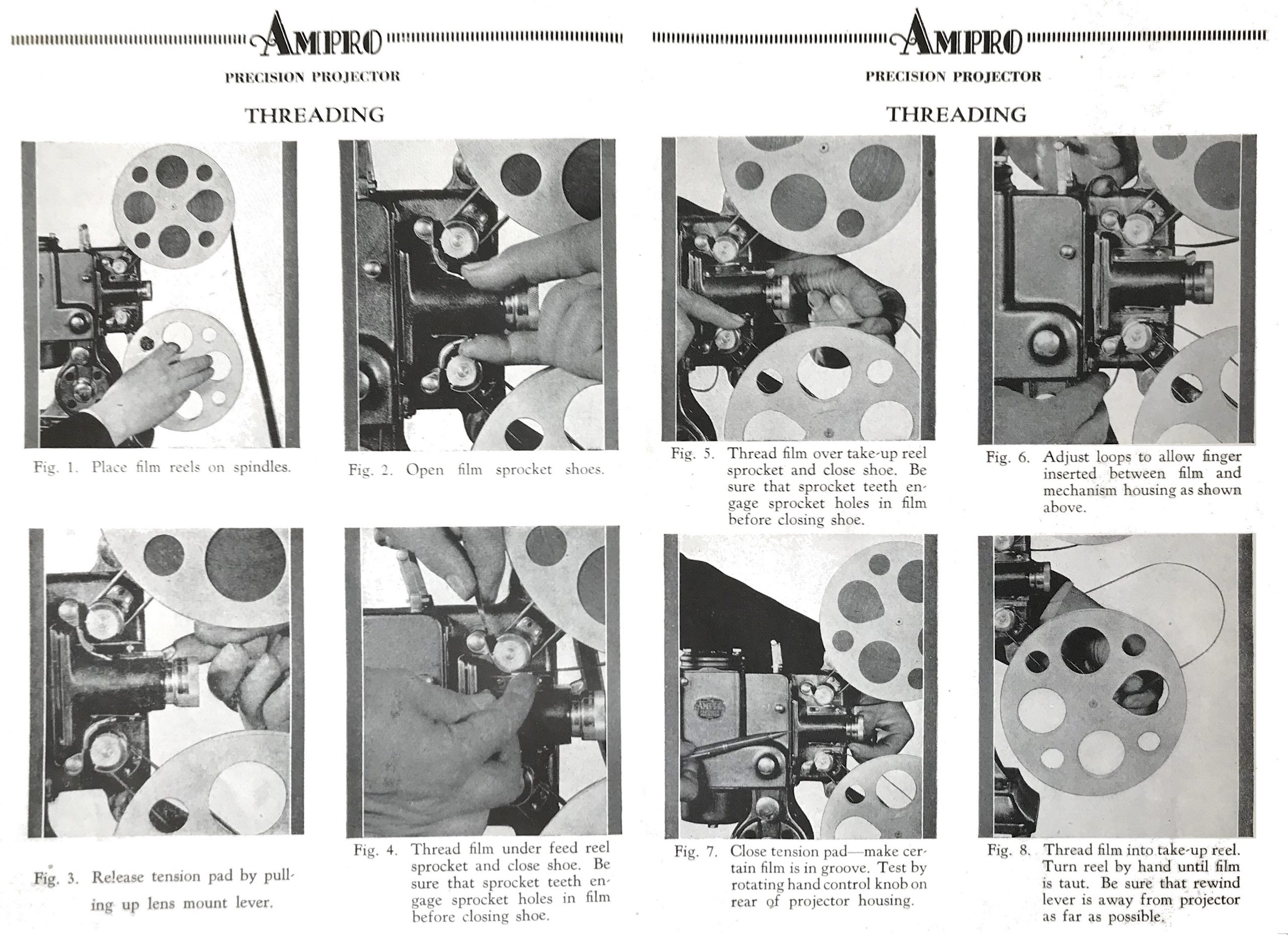 I found an Ampro 16mm precision projector model No. KD-19912. It runs and the bulb still works. It needs cleaned and the motor sparks a bit. I’d love to watch some silent films on it but I don’t feel safe using antique films until I know for sure how to use it. I can’t find a users manual anywhere online. Could you help me?