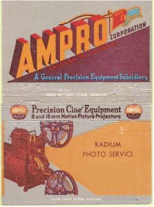 Through the entirety of the 1930s, the Ampro Corporation operated as a subsidiary of the Universal Stamping and MFG Company, but with Axel’s son Harry Monson leading a successful nationwide sales mission on the projector front, the company soon found itself overcoming those initial Depression-induced pitfalls and gaining a loyal following among traveling salesmen, teachers, and industrial film makers. No longer a side venture, the projectors were now keeping Universal in business on their own, and in recognition of this, the entire company adopted the Ampro Corp. name in 1940.