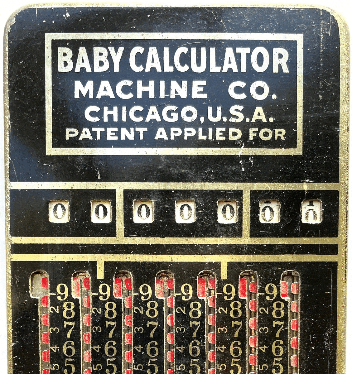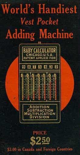 “So simple in operation a child can use it. Every man and woman will find it a boon in business, at home, or anywhere that figures are used for any purpose. You need not be an expert accountant or scholar—let the Baby Calculator do the work—speedily and accurately.” –Baby Calculator advertisement, 1926