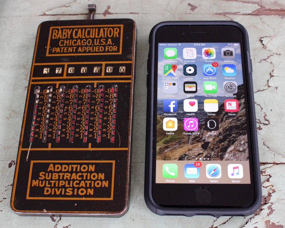 It has the same shape, size, and reflective black surface as a smartphone, but the “Baby Calculator” [named for its diminutive dimensions, mind you, rather than its ability to count infants] was invented 80 years earlier, and was thus quaintly disconnected from the outside world. Here was a pocket computer that didn’t need to be charged, backed up, or upgraded; nor did a single one ever get hacked. Instead, for the meager price of $2.50, it put all the wonders of basic mathematics in the palm of your hand. All you had to do was delicately and repeatedly jab a slippery stylus between a series of stubborn metal tabs situated inside seven, centimeter-wide columns, and. . . . BAM! Arithmetic for the Jazz Age!