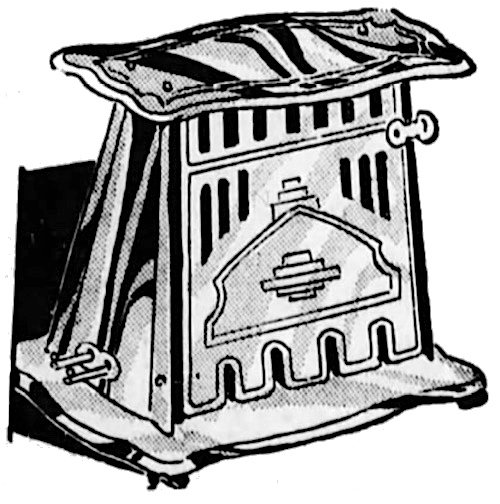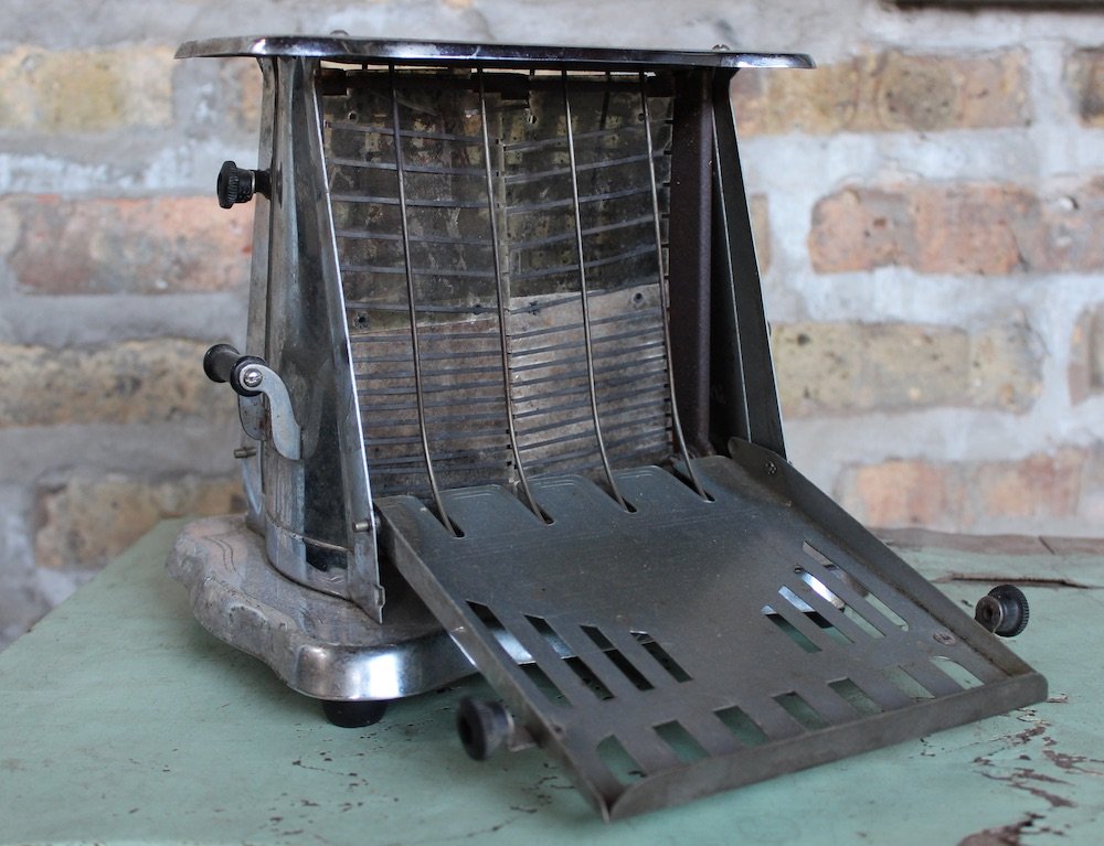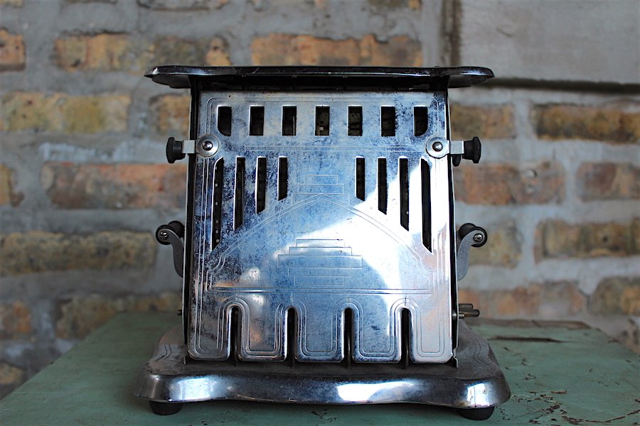 Looking like a miniaturized attraction from the “Century of Progress” World’s Fair, this majestic creation by Chicago’s Bersted MFG Company was actually a bargain basement brand for its day; something you could buy at a dollar store in the early years of the Great Depression. “Toasts two slices at one time!” one advertisement proclaimed. “A real bargain!”