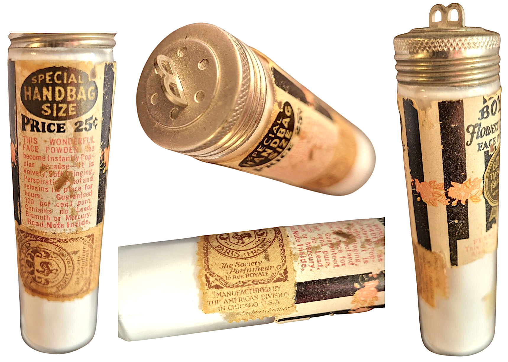 “Dear Madame: I have searched the world to secure the finest and most costly ingredients necessary to make this Face Powder for you,” read a small letter packaged with Boyer’s Flowers of Beauty Face Powder. “Here in my laboratory I have proven that better Face Powder than that found in this container cannot be made. . . . If Boyer ‘Flowers of Beauty’ pleases you, tell your friends about it and be sure and get this same brand again.”
