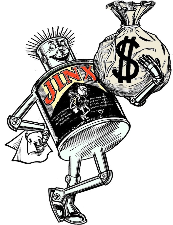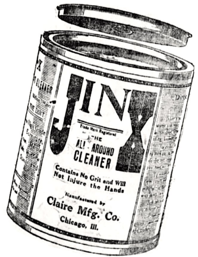 I suppose we could debate how progressive it actually was to equate house work with jail time, but in retrospect, Judge Ehler might have had his own personal motivations for sending men to the mop instead of the slammer. He was, after all, a longtime stockholder in the Claire Manufacturing Company, makers of the quasi-famous “JINX” house cleaner. And within a few more years, he’d be the company’s sole owner.