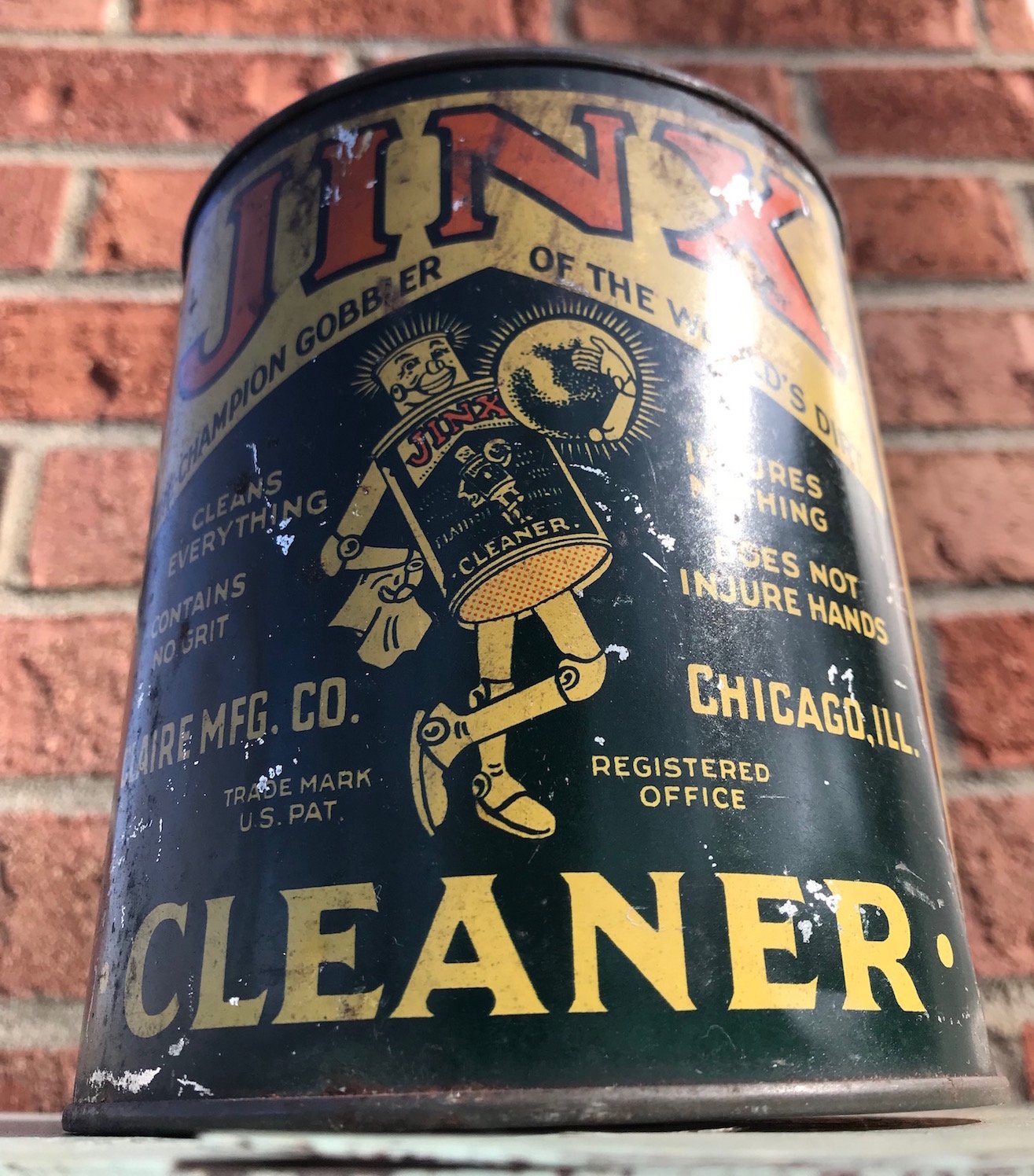 Today, Mark can also purchase a new butane-enriched, spray-can version of “Mr. Jinx” All-Purpose Cleaner. It comes in a recyclable container and contains no ozone depleting compounds. Better still, it’s got a small homage to the original 1918 Mr. Jinx mascot still included on the side of the can. It’s a nice nod to the past—and a reminder of a small Englewood business that made the world just a little bit shinier.