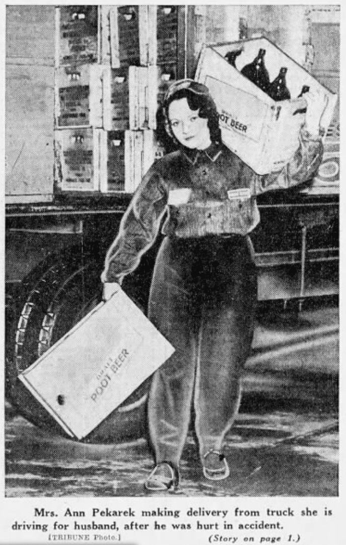 On March 22, 1940, the front page of the Tribune included a proto-feminist profile in courage (masquerading as a fluff piece) about an enterprising young housewife named Ann Pekarek, who started driving a Dad’s Root Beer truck after her husband, Frank, broke his leg and couldn’t do the job himself. The story was titled: “A Tale About a Swap; Apron for a Truck.”