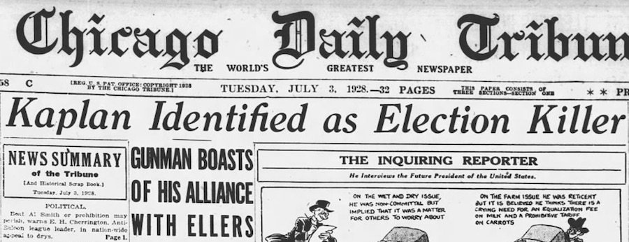 “Kaplan Identified as Election Day Killer” – Chicago Tribune, July 3, 1928