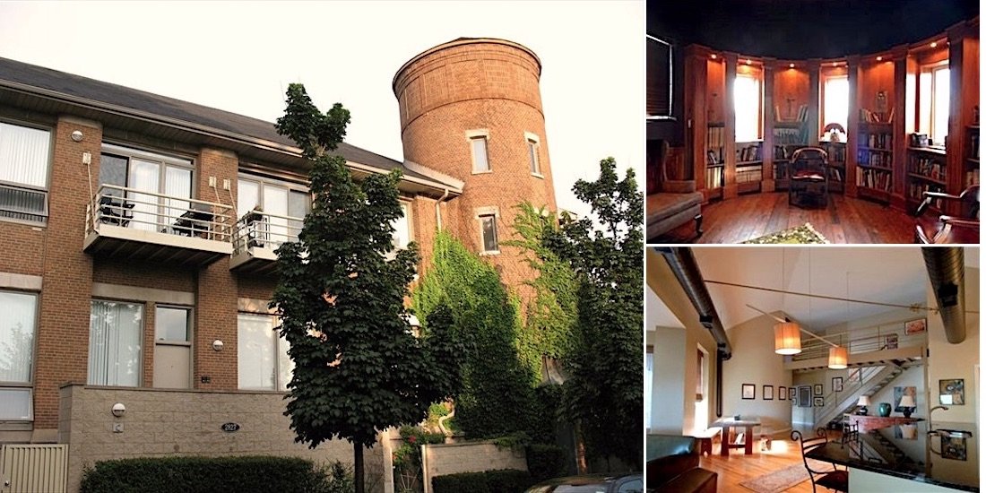 One of the new condos is actually built right into the original turret itself (see above), which looks largely the same on the outside, but is now an ultra-modern, 4,000 sq. ft. loft on the inside, complete with catwalks, 18-foot high ceilings, and an oak-paneled circular library in its “attic.”