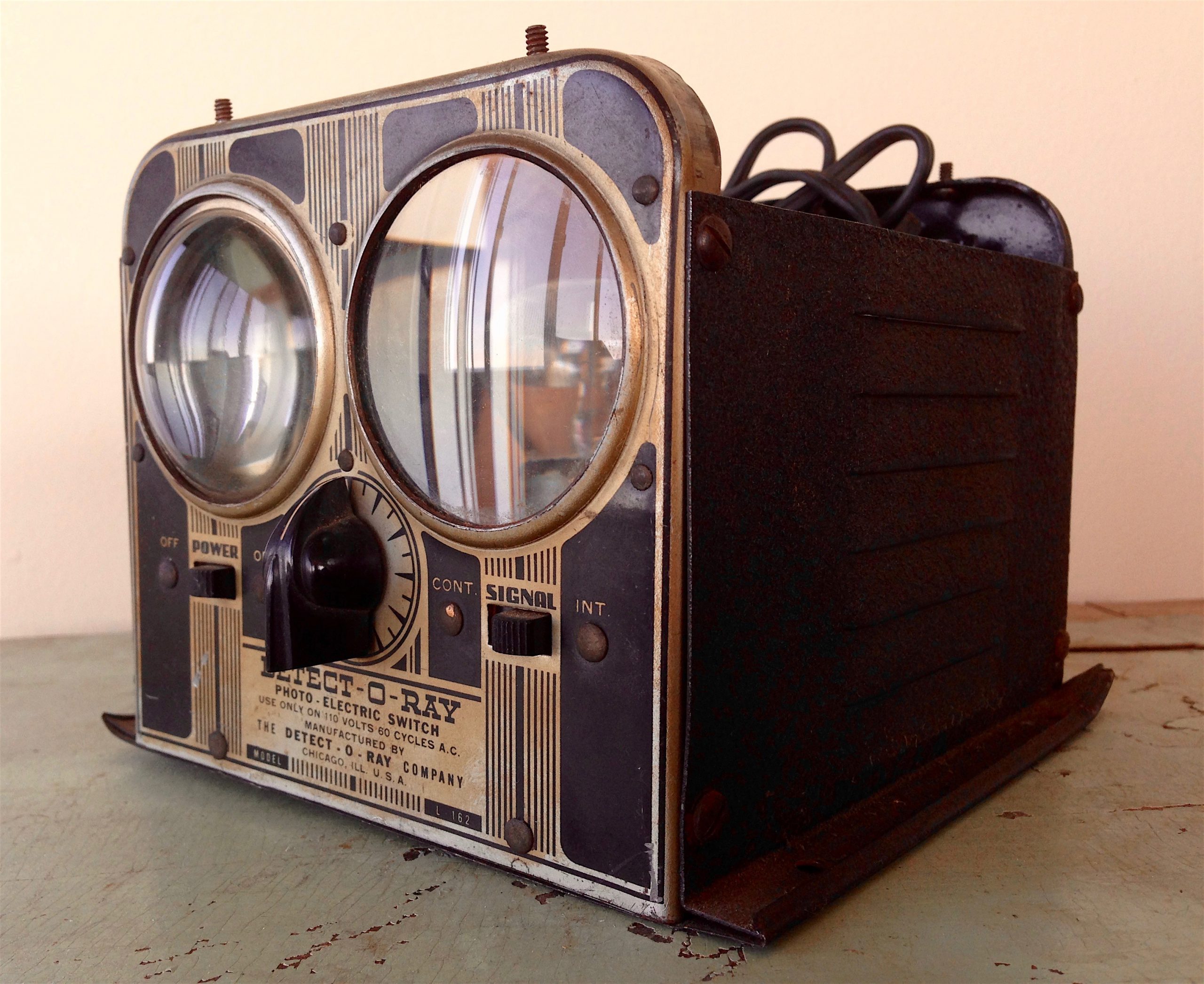 “Detect-O-Ray can be plugged into a 110-volt, a.c. socket,” one ad read. “Sensitivity is adjustable as well as the type of light to be used. Available with a weather-proof housing for outdoor installations. The Detect-O-Ray Co., 216 N. Clinton St., Chicago, 111.”