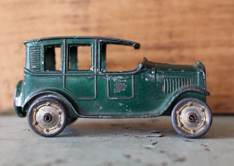 By 1911, Dowst Bros. had unveiled its first toy car, a generic limousine model, which was followed a few years later by their first miniaturized take on a real automobile: the Model T. It was part of an expanded campaign spearheaded by Theodore Dowst, who ultimately may have been a bigger architect of the company’s success than either his father or his uncle. Ted cast a wide net, helping to design not only mini vehicles but a whole lot of other random diecast novelties: whistles, tops, telephones, animals, etc.