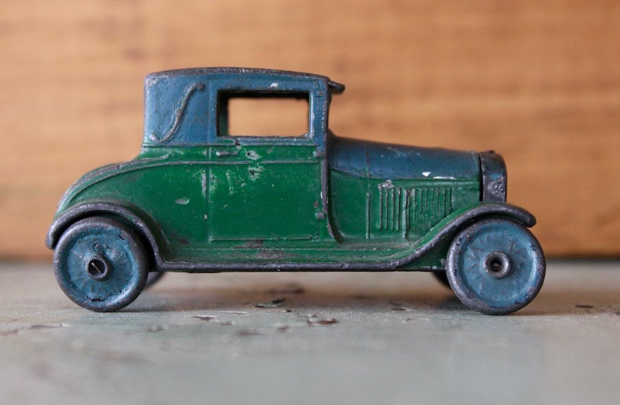 The two primary Dowst artifacts in our museum collection—a No. 4655 Coupe and a No. 4629 Sedan—were both produced from the mid 1920s to the early ’30s, and were popular models based on contemporary, real-life Ford automobiles. They were part of a wider series patented by Theodore Dowst, who started with the firm as a bookkeeper in 1906, but would gradually become an innovative gizmo designer and, eventually, company president.