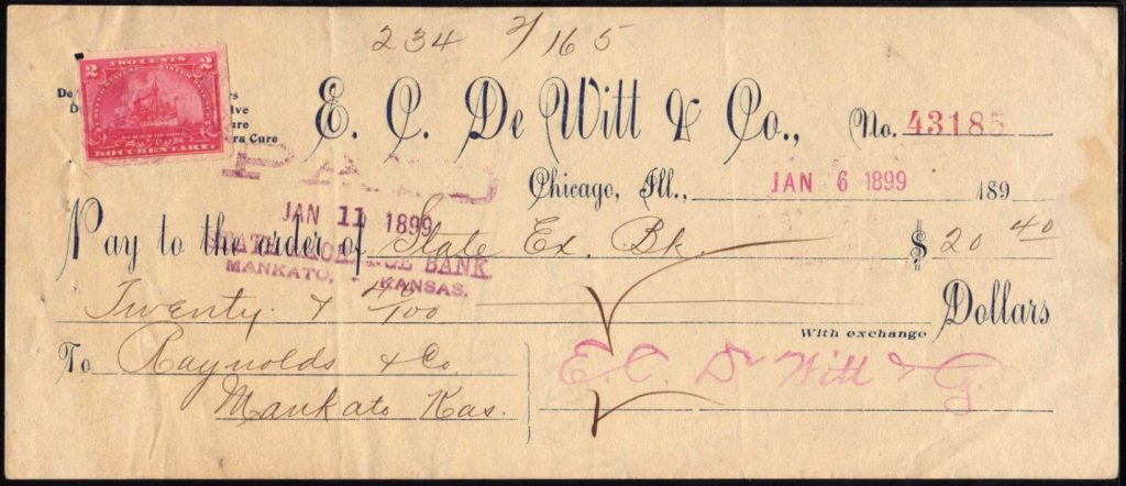 [A check signed by E.C. DeWitt in Chicago, long before his encounters with Mae Brearton]