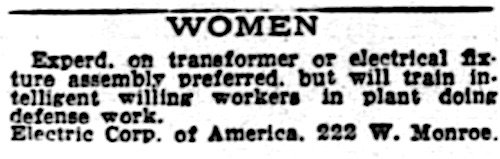 [1942 ad seeking women to work at the ECA factory during the war]