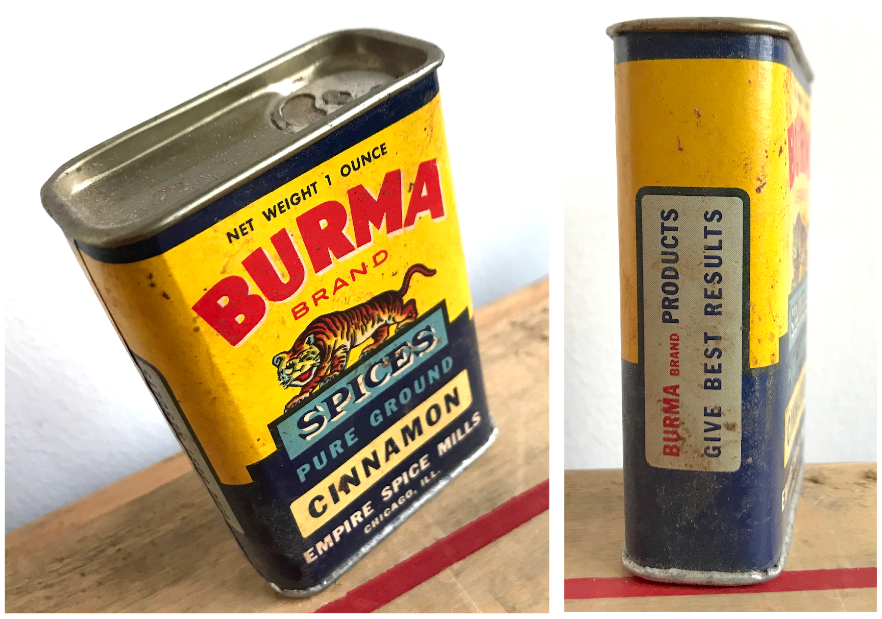 For one thing, they knocked it out of the park with their packaging! The tiger logos and striking blue-and-gold labels of Empire’s “Burma Brand” product line have charmed vintage tin collectors for decades. To our admitted surprise, some of those old trademarks are also still very much in active use. Burma, in fact, is the flagship brand for another Chicago business called Consumers Vinegar & Spice Company, Inc.—the same wholesale firm that bought out Empire Spice Mills way back in 1948 [the actual namesake country of Burma hasn’t even kept its branding for that long, as it became Myanmar in 1989].