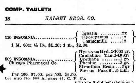 Meanwhile, for Woody Harrelson and other fans of medical cannabis, know that you had a friend in the Halsey Bros., as a company catalog from back in 1914 recommends the drug to treat several ailments, including insomnia.
