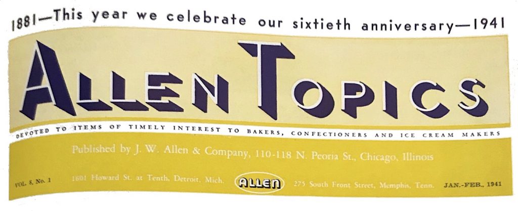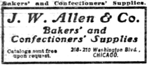 “Regardless of where you are located,” read a 1927 ad, “if in the United States, you can buy from J. W. Allen & Co. just as conveniently and satisfactorily as a confectioner who is in the immediate vicinity of Chicago—the supply center of America.”