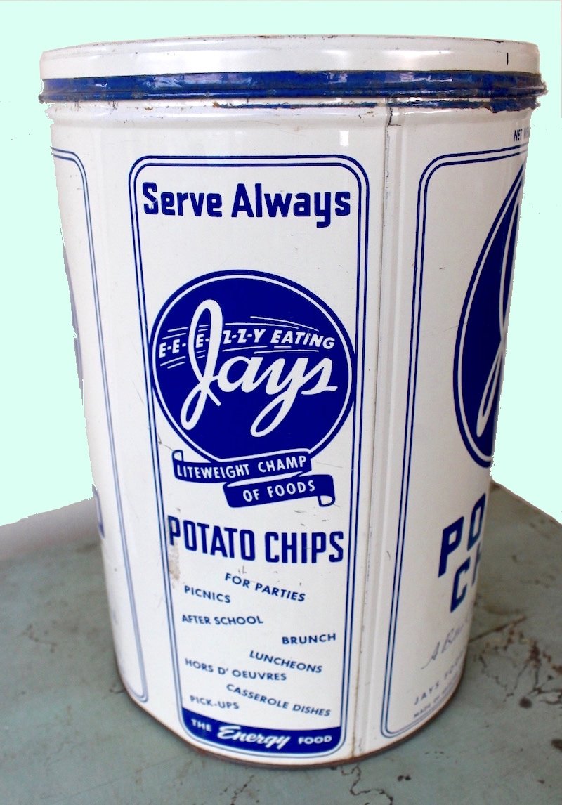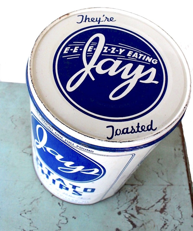 Now more that 50 years later my collection of large snack / chip cans from the 30’s,40’s &50’s includes Jays regular and butter popcorn plus both Japp’s and Jays Potato Chips.