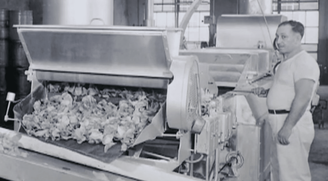 [An automatic potato chip making machine in operation, c. 1950s]