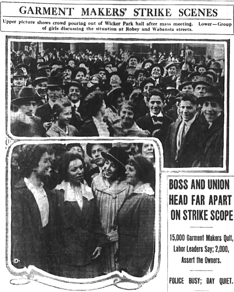 “Forty raincoat makers just struck at Harrison Raincoat Co., 766 W. Harrison, manufacturers for Kling Bros., 5th av. near Congress,” the Day Book newspaper reported that August.