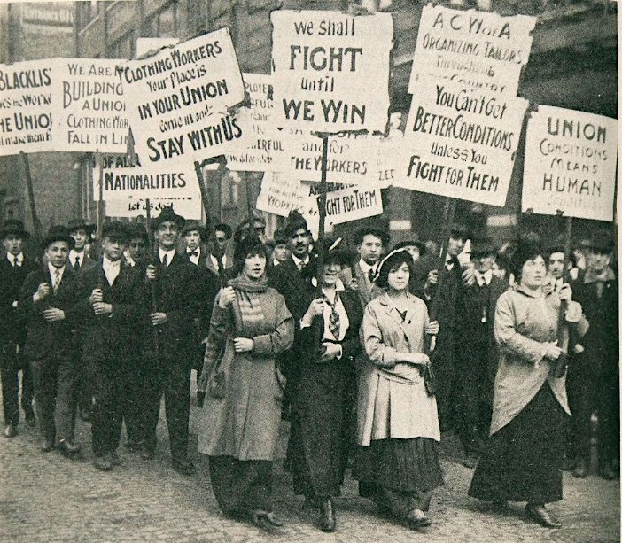 And so, in 1915, another wave of strikes began, with the Ladies Garment Workers joining the Amalgamated Clothing Workers in demanding “outrageous” stuff like: overtime pay, holidays off, collective bargaining rights, a maximum 48-hour work week, and minimum wages ($26 a week for trimmers, $20 for cutters, $20 for examiners and bushelmen, and $8 for apprentices). The Wholesale Clothiers’ Association scoffed at all of it, claiming that most workers were actually very pleased with their situations, and that the unions were corrupting their minds with a false sense of injustice. With no compromise in sight, the walk-outs continued.