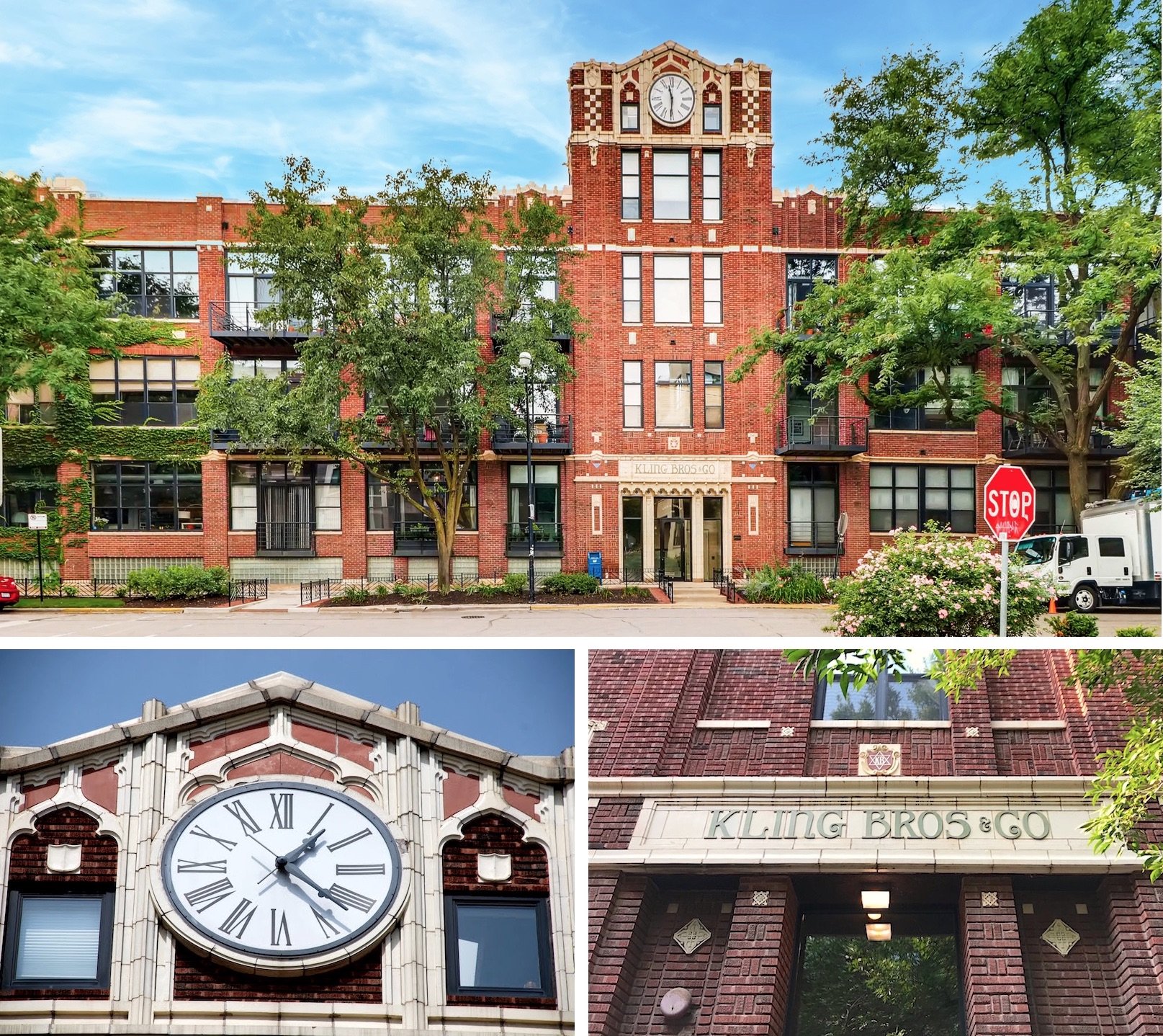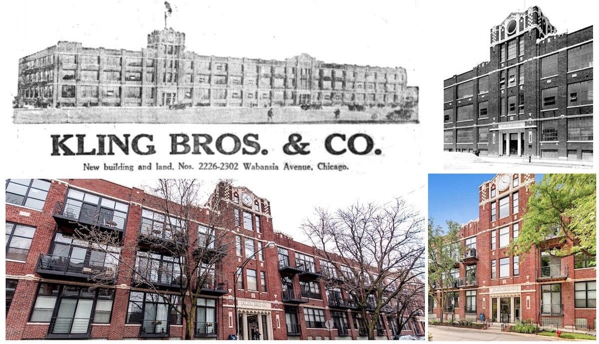 [Current view of the former Kling Brothers factory at 2300 W. Wabansia Ave. in Wicker Park. It was opened in 1920 and converted into the “Clock Tower Lofts” in the 1990s]