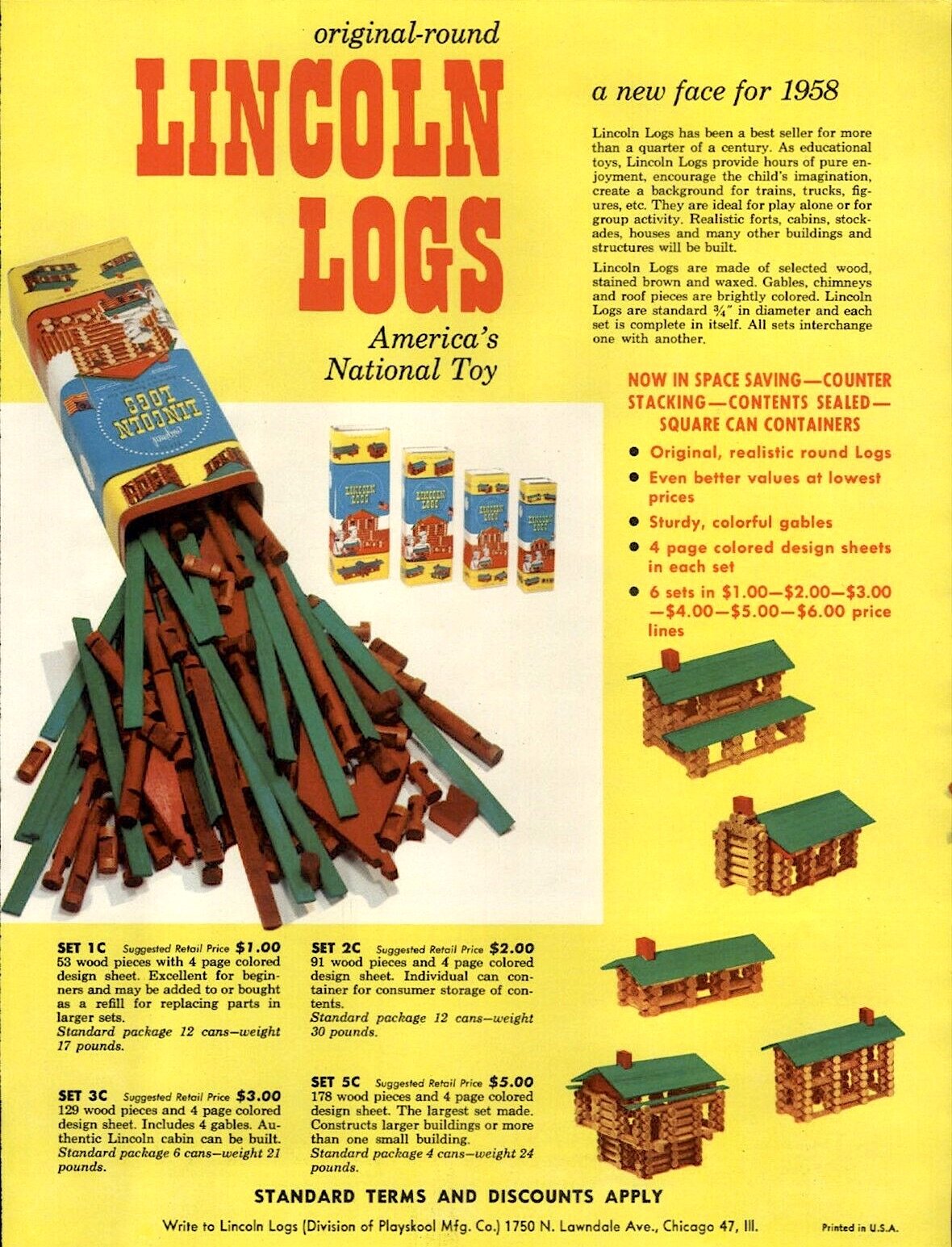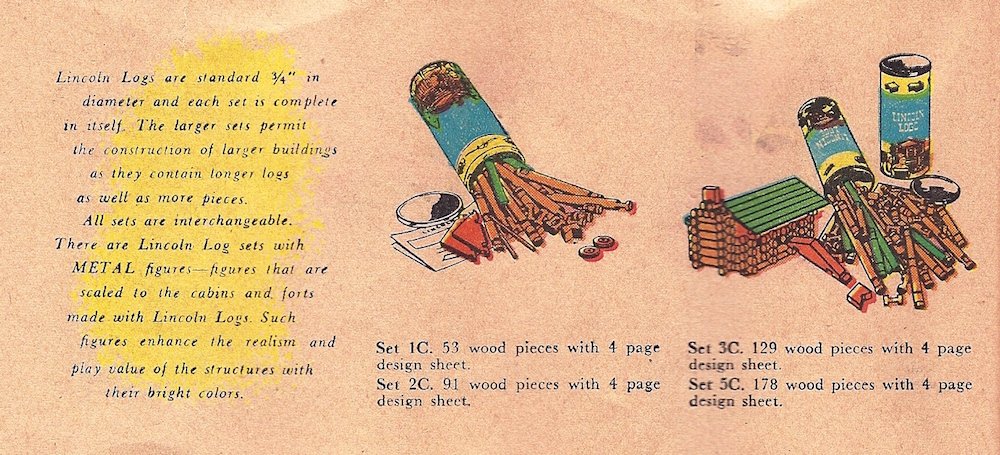 [Page from 1950 Playskool catalog. Playskool purchased Lincoln Logs in the early ’40s]