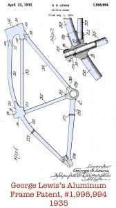 “The year of 1932 found me working in a small machine shop on the northside of Chicago [3200 W. Carroll Ave.], developing and perfecting an all-aluminum bicycle,” Lewis recalls in his memoir, My Early Life in Wichita and Other True Stories. “Dyrenforth, Lee, Chritton and Wiles (Patent Lawyers) were handling the patent end of the new bicycle.