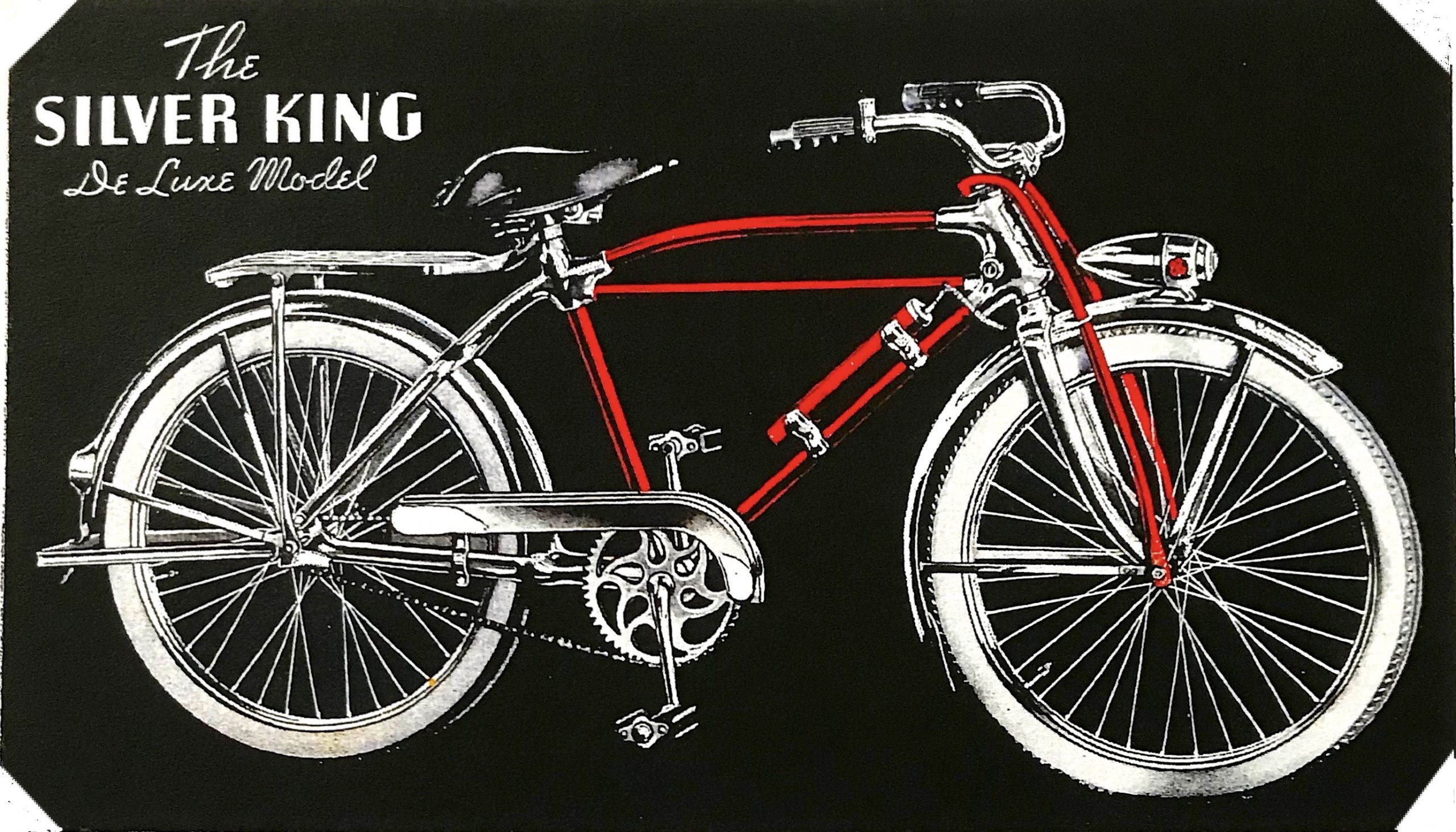 “The SILVER KING bicycle is not the result of accident or chance. The design, as you see it now, represents nearly two years’ work by several well known bicycle engineers, cooperating with a bicycle manufacturer of more than twenty-five years’ experience. The SILVER KING is the last word in bicycles. Truly, it may be said—the SILVER KING is the BICYCLE OF TOMORROW.”—1934 advertisement