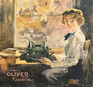 [Above: Advertisement, c. 1905, seeking sales agents to promote Oliver Typewriters “at home”]