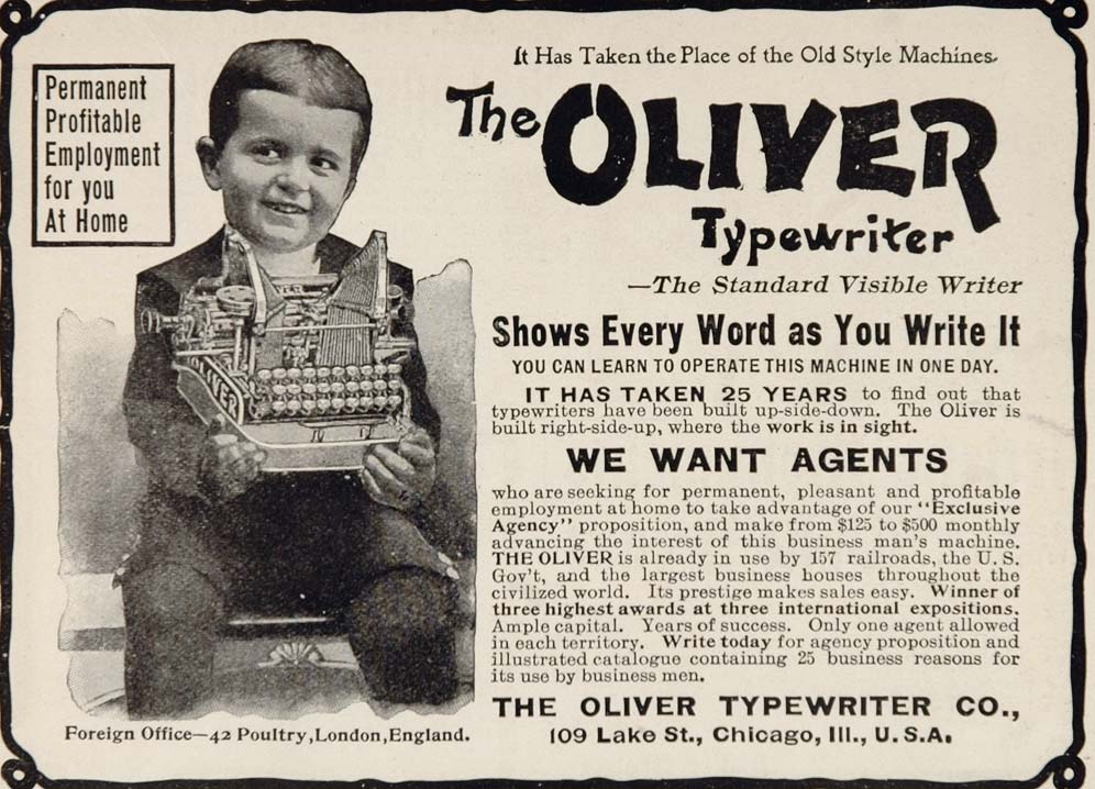 On April 28, 1907, the Oliver Typewriter Company took out a full page ad in the Chicago Tribune.