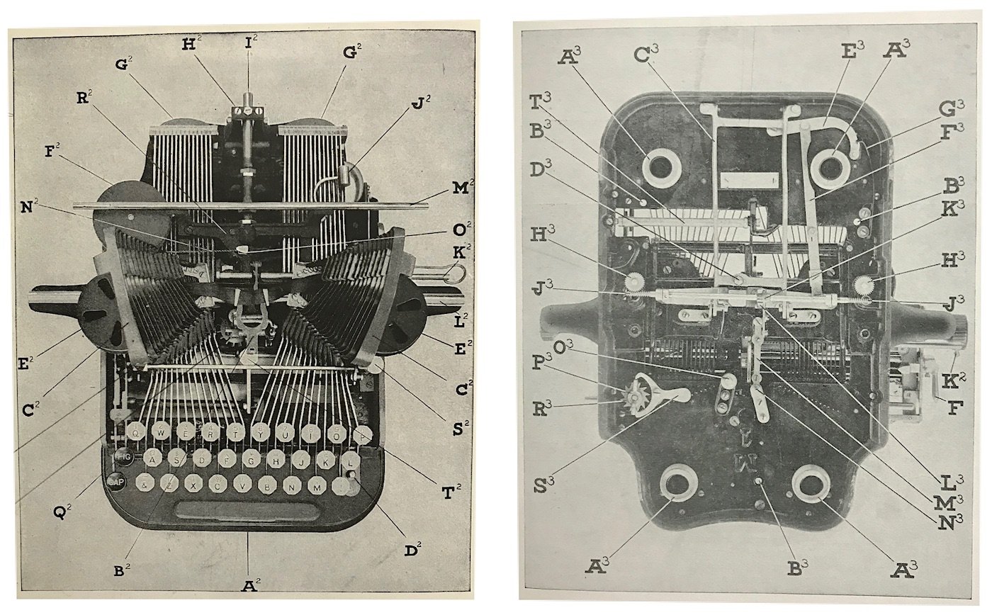The Oliver’s bat wings weren’t solely about creating sight lines, though. Salesmen had a boatload of other benefits to communicate about the design, touting its “simplicity, durability, speed, and manifolding power” along with the visible writing perks. These became the “five great essentials” of a typewriting machine . . . until “versatility” eventually made it “six great essentials.”