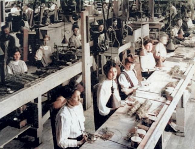 [During World War I, many women entered the Oliver workforce, helping to build not only typewriters, but munitions for the war effort]