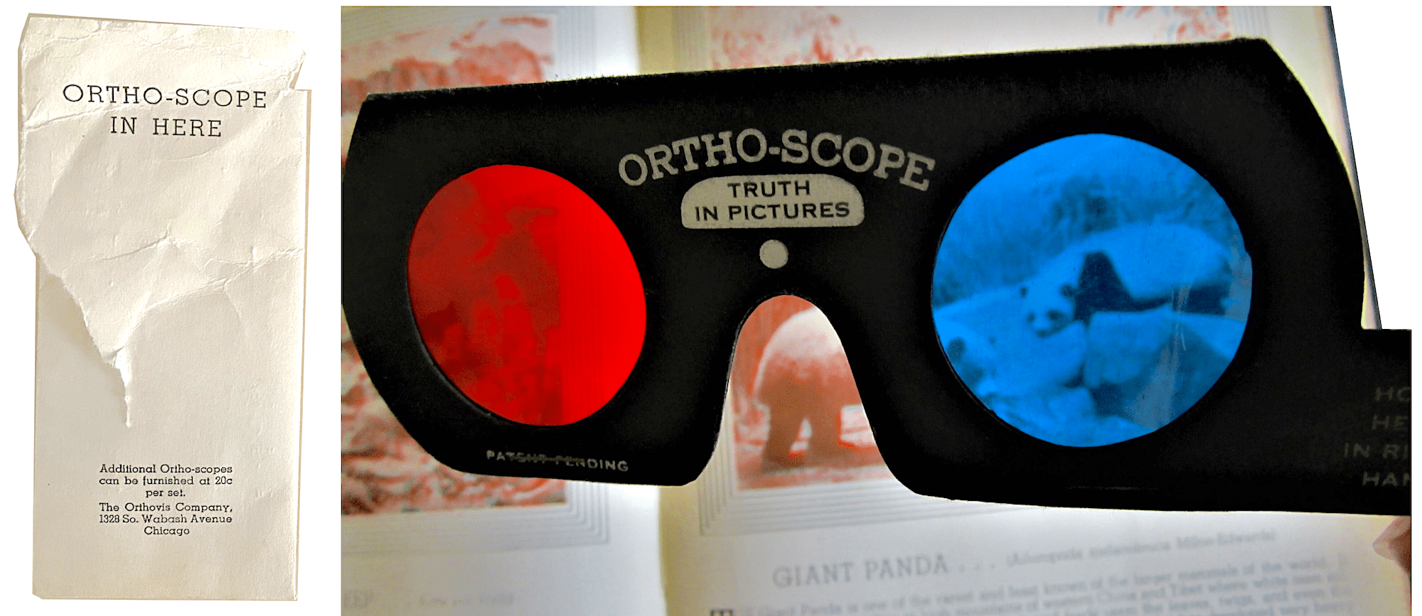The technology behind the Orthoscope combined some old 19th century tricks from stereoscopic viewers with some slightly newer innovations from the 1920s, namely the use of two color lenses—one red and one cyan/blue—to filter a single image in a manner that created a sense of depth within it.