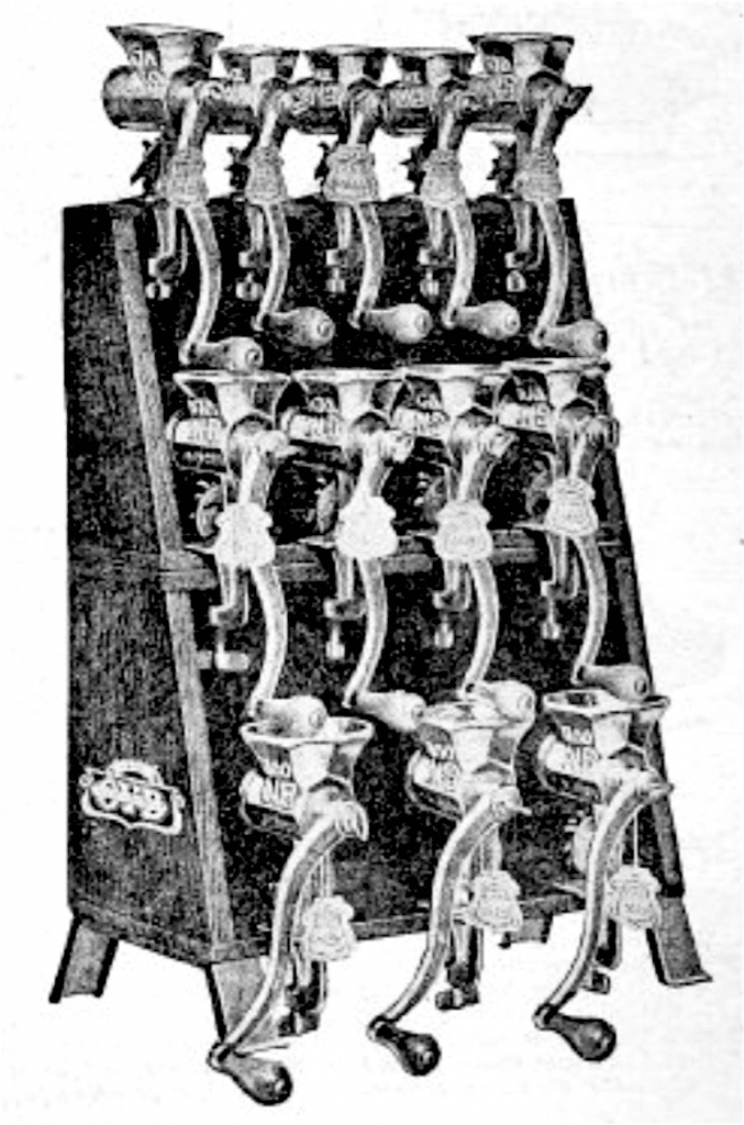 [OVB Food Chopper Display Shelf for merchants, available in 1916 Hibbard catalog]