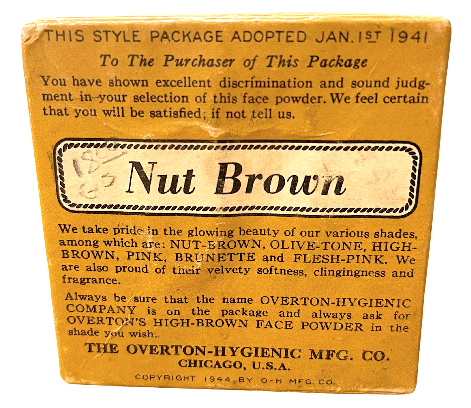 Museum Artifact: Overton’s High Brown Face Powder, 1944