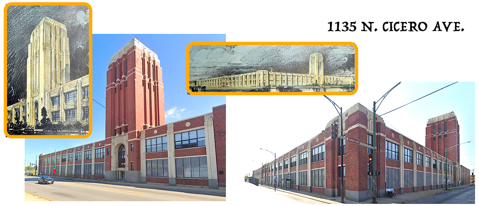 The Pines Winterfront building, at 1135 N. Cicero, was opened in 1929 to considerable fanfare. Designed by the architectural firm of Mundie and Jensen, the 190,000 square foot complex is a two-story affair, save for the 120-foot Art Deco central tower (which originally doubled as a water tower) that still looms over the neighborhood.