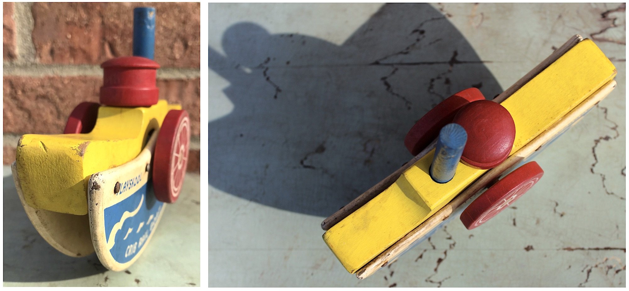 “. . . World War II decimated the metal toy industry in the United States,” the Caplans explain in their book, “and the wooden toy companies like Holgate, Playskool, Fisher-Price, and Childhood Interests were in great demand. For the first time, Americans discovered the play value inherent in a carefully designed and manufactured educational toy. Playskool and Fisher-Price grew tremendously.”