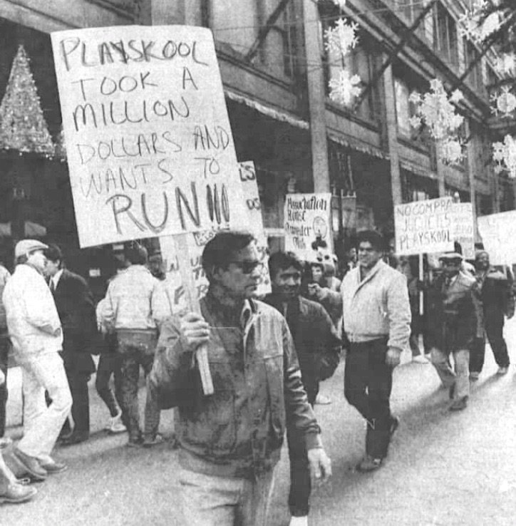 Milton Bradley execs, as well as Playskool president George Volanakis, claimed that the main problem was the condition of the 50 year-old factory, but nobody seemed to buy the explanation. For months, union workers and activists protested the factory closure and called for boycotts against Playskool, Milton Bradley, and Hasbro toys.