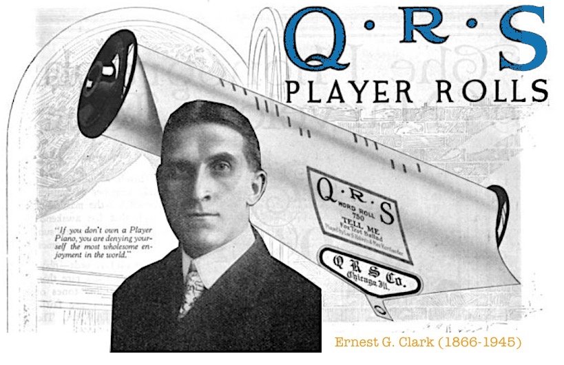 From early on, a department was also established within the Melville Clark plant for recording and manufacturing a new line of paper piano rolls that would work exclusively with the Apollo. Likely for legal reasons, Melville elected to make this roll department a separate company unto itself, and installed his highly capable younger brother Ernest G. Clark as the first president of the new subsidiary, which would be known—somewhat inexplicably—as the Q-R-S Company.