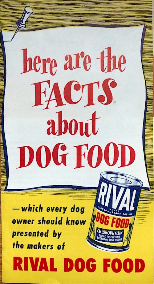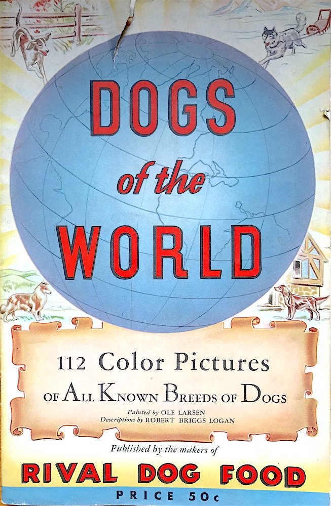 “We say proudly and emphatically—that Rival builds healthy dogs at a low cost,” reads a page inside the company’s 1940 educational guidebook / giant advertisement, Dogs of the World. “Rival does all you want a dog food to do, surely and economically.