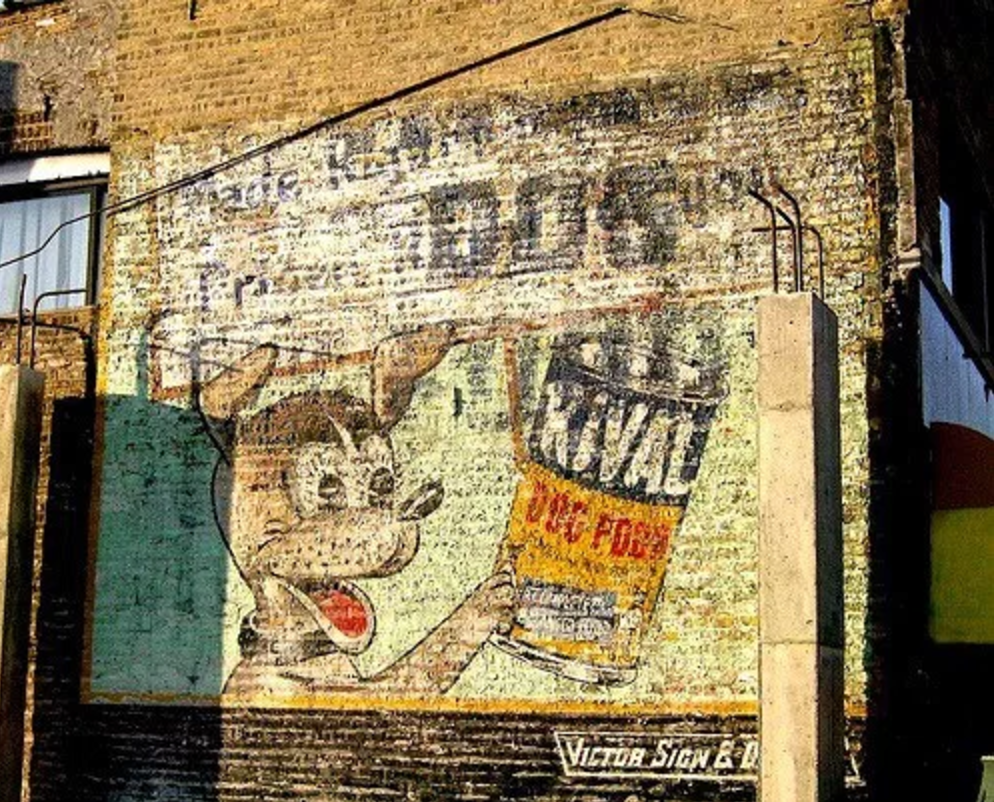 [Until recently, this vintage Rival ad was still visible on a building at 6224 N. California Ave.]
