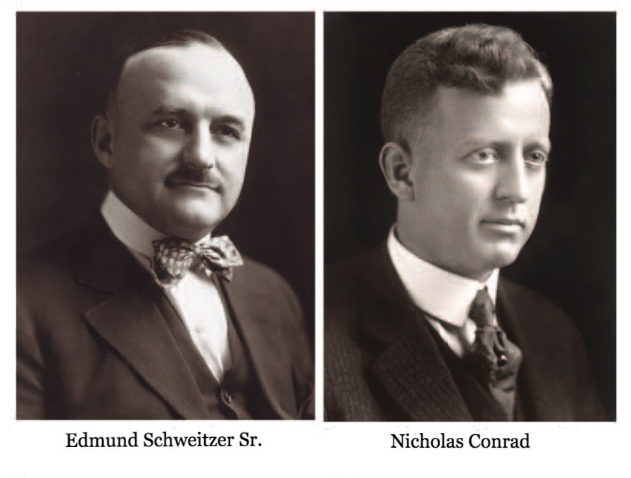 Edmund O. Schweitzer (1875-1949) and Nicholas J. Conrad (1883-1956) grew up at the dawning of the electrical age; a pair of Midwestern kids who wisely angled their career paths in the direction of that revolution. They collected electrical engineering degrees from Purdue University and the University of Wisconsin, respectively, and by 1907, both fellas were vital minds at the new Commonwealth Edison Company, formed from a merger of Commonwealth Electric and the Chicago Edison Company. Schweitzer was the Chief Testing Engineer for ComEd, while Conrad was the Generator Starting Engineer.