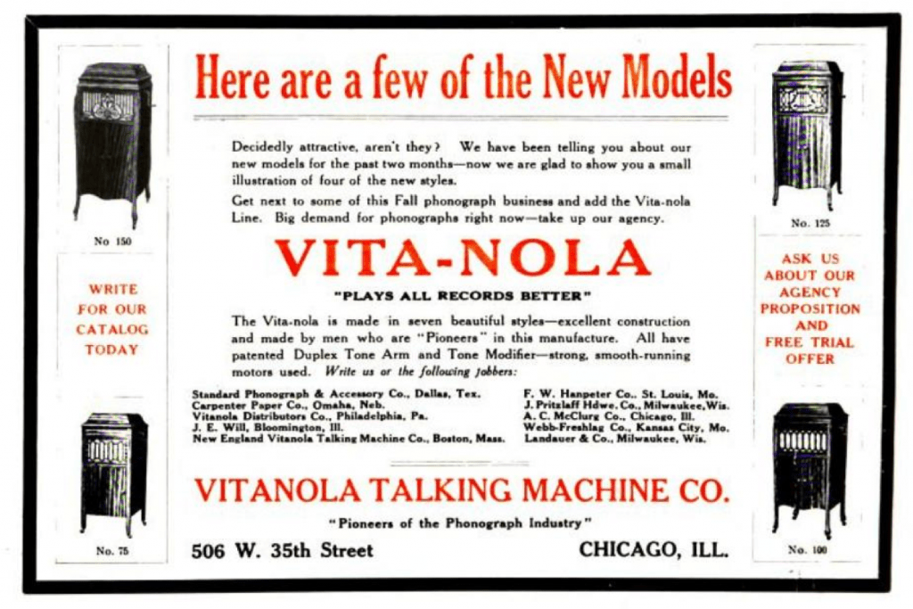 [A magazine ad for the Vitanola Talking Machine Co. from 1917]