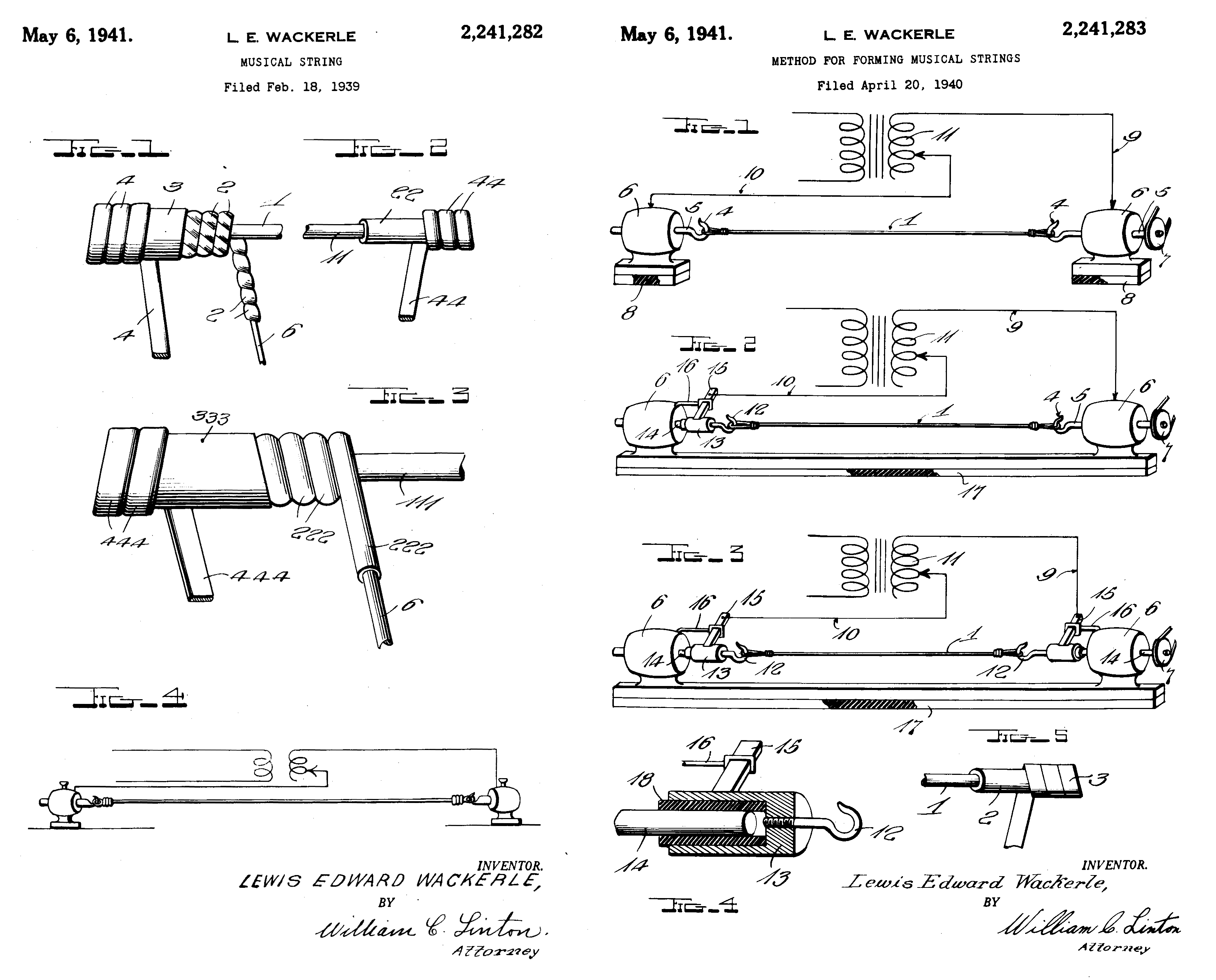 [Two “Musical String” patents awarded to Lewis Edward Wackerle in 1941]