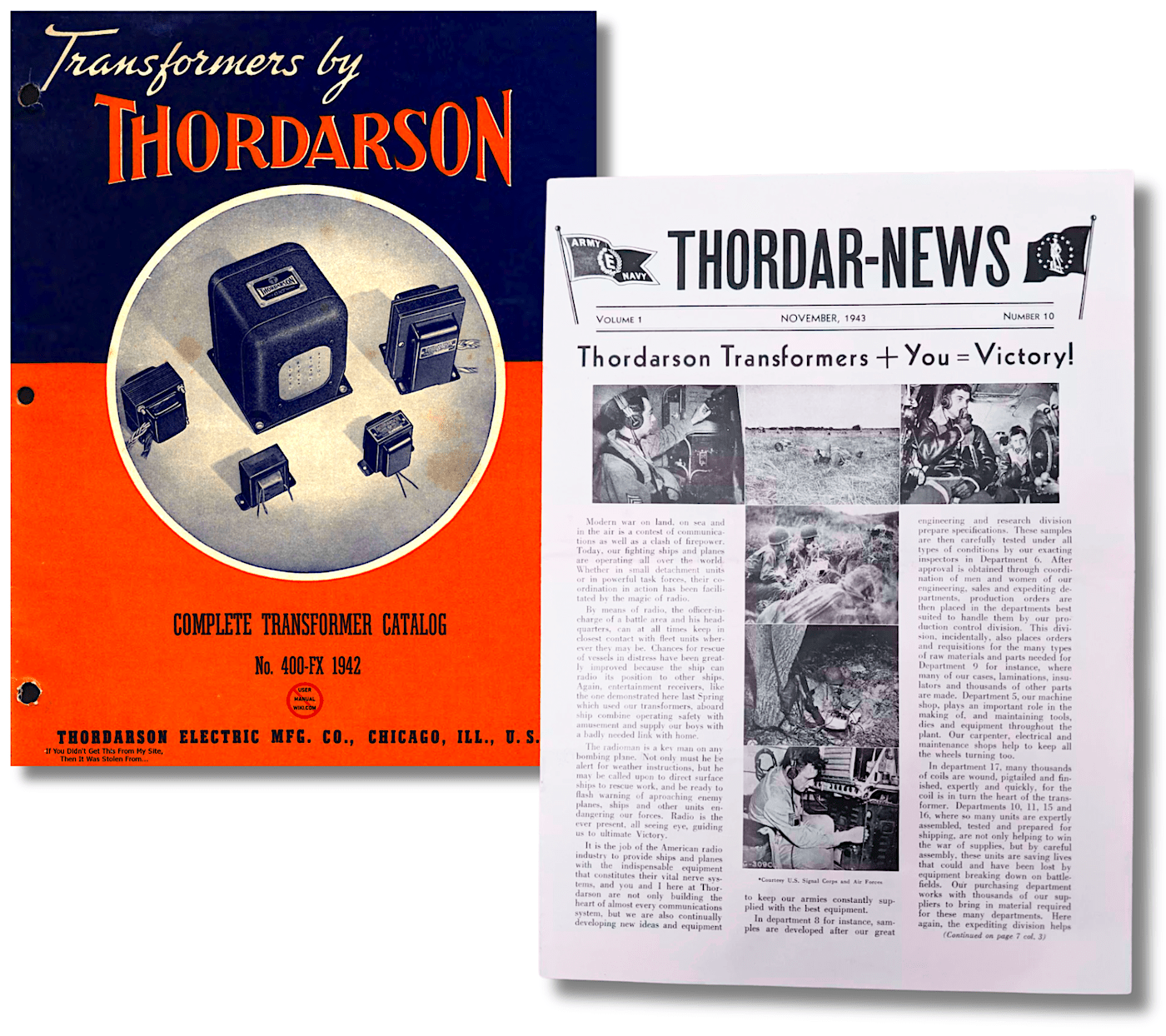 “It is the job of the American radio industry to provide ships and planes with the indispensable equipment that constitutes their vital nerve systems, and you and I here at Thordarson are not only building the heart of almost every communications system, but we are also continually developing new ideas and equipment to keep our armies constantly supplied.” —Thordarson company newsletter (Thordar News), November 1943
