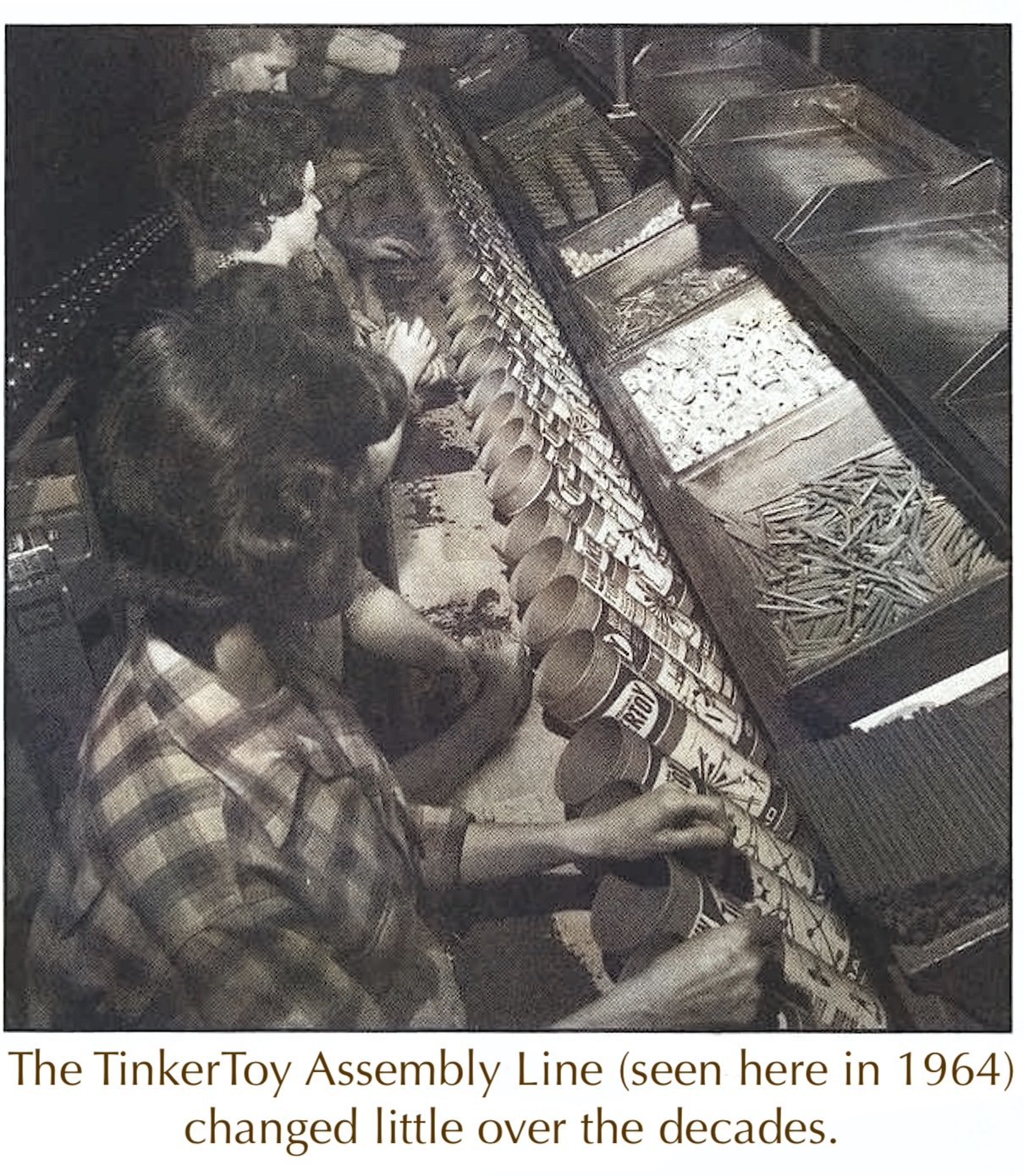 “Forty-five million feet of wood—enough to construct 4,867 bridges the length of San Francisco’s Golden Gate span. . . . That vast amount is the quantity used each year to manufacture one of America’s most popular toys—the Tinkertoy.” — The Dispatch, 1972