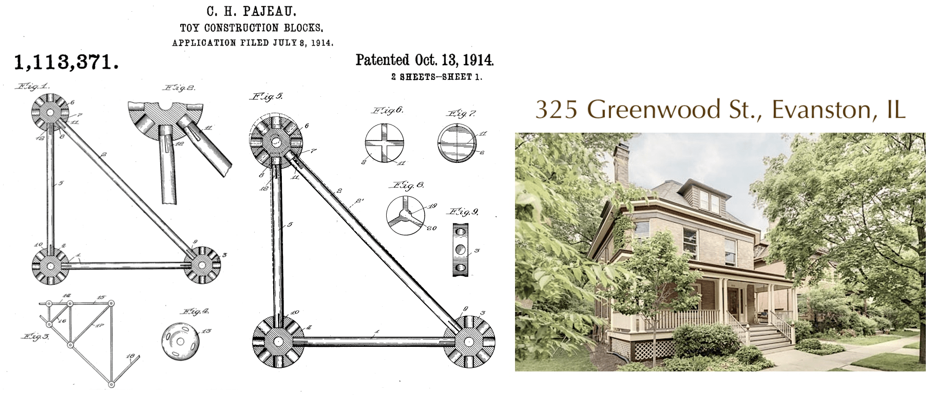 [The Evanston house where Pajeau invented the Tinkertoy, 325 Greenwood St., was built in 1898 and is still standing today]